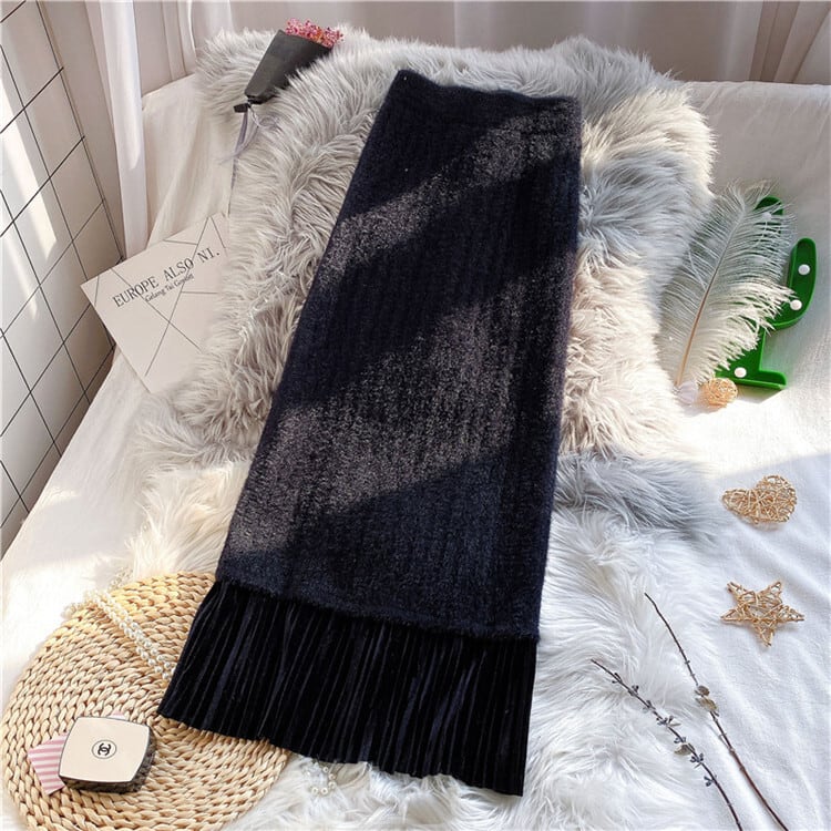 女性らしくて冬に人気アイテム洗練された 縫付 Aライン編み物 ヒップスカートハイウエスト傘スカート