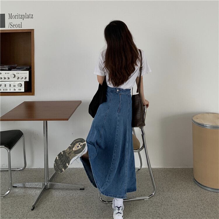 レトロ ハイウエスト 無地 オールマッチ 中・長セクション 気質 デザインセンス デニムスカート