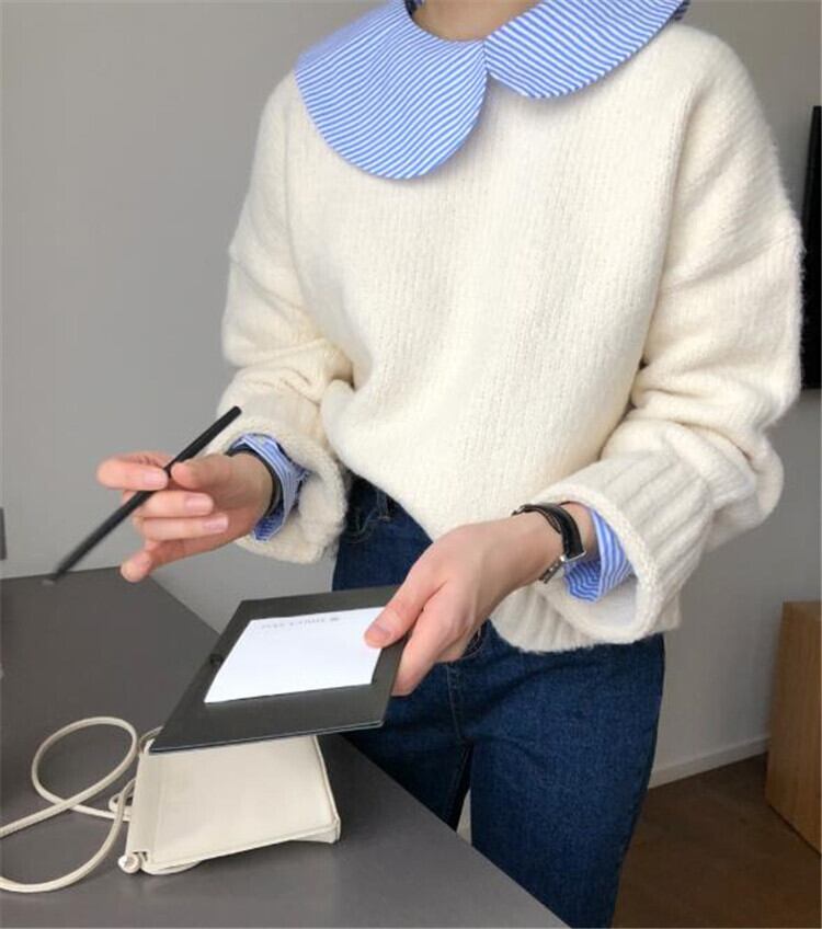 長袖 人形の襟 シャツ シンプル トップス 大人気 ストライプ ゆったりする カジュアル