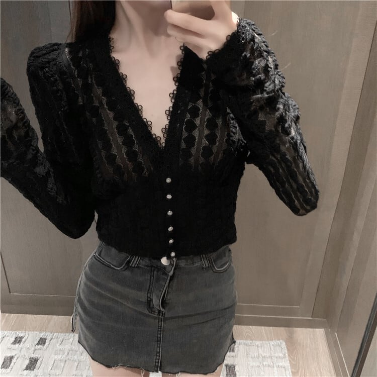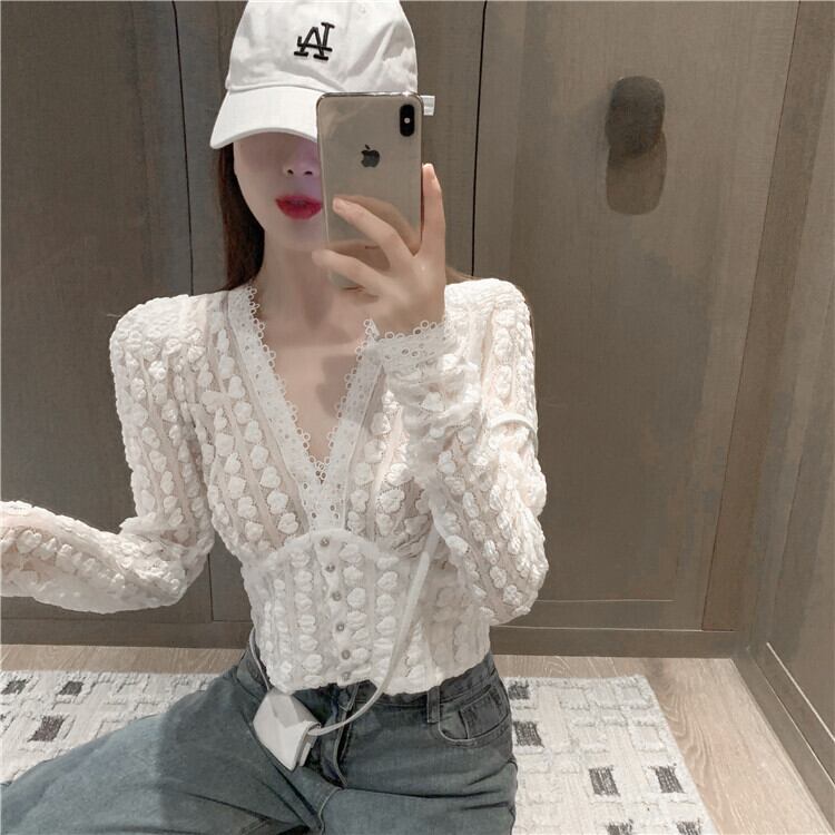 長袖 半袖 Vネック レース シャツ トップス 百掛け 気高い 女性 エレガント スリムフィット