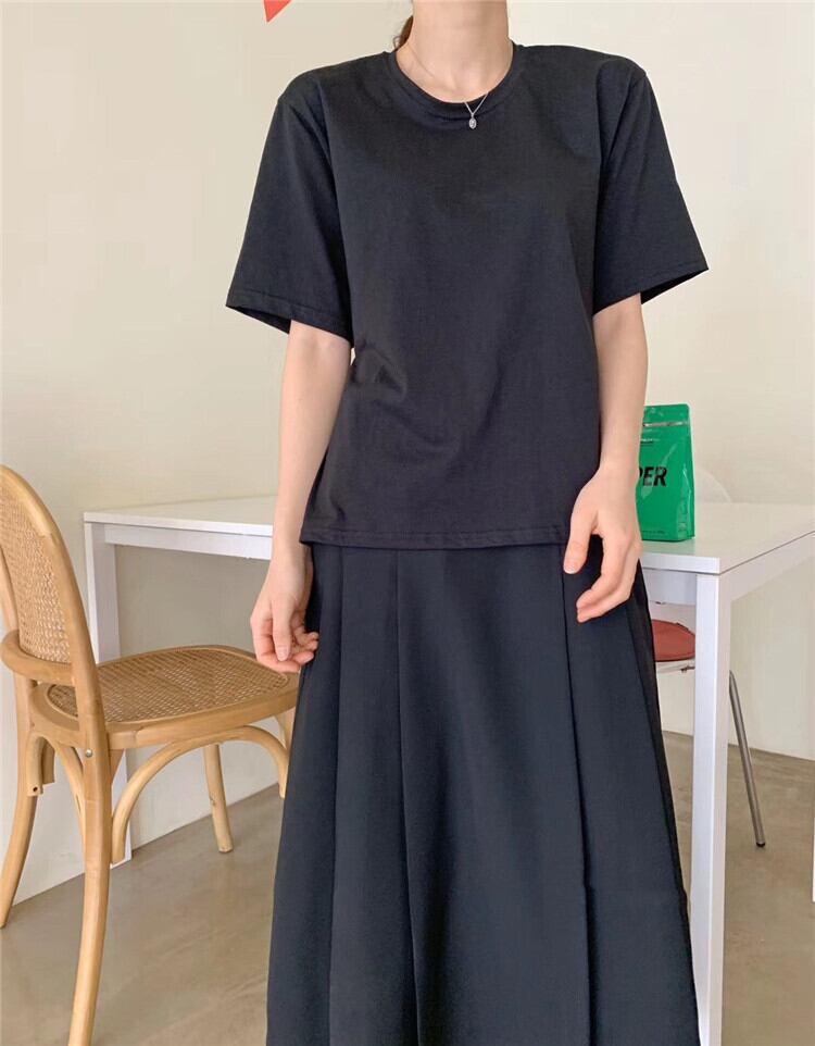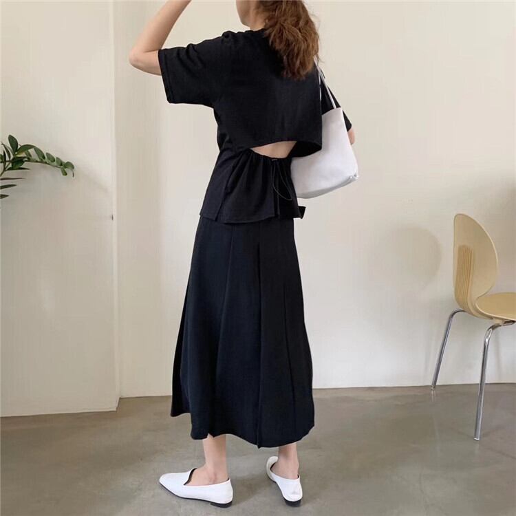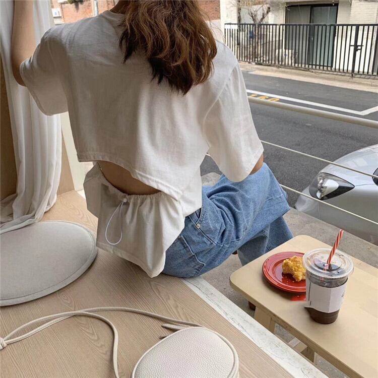夏 バックホロー ドローストリング デザイン 簡約 ゆったりする 半袖 Tシャツ 2色