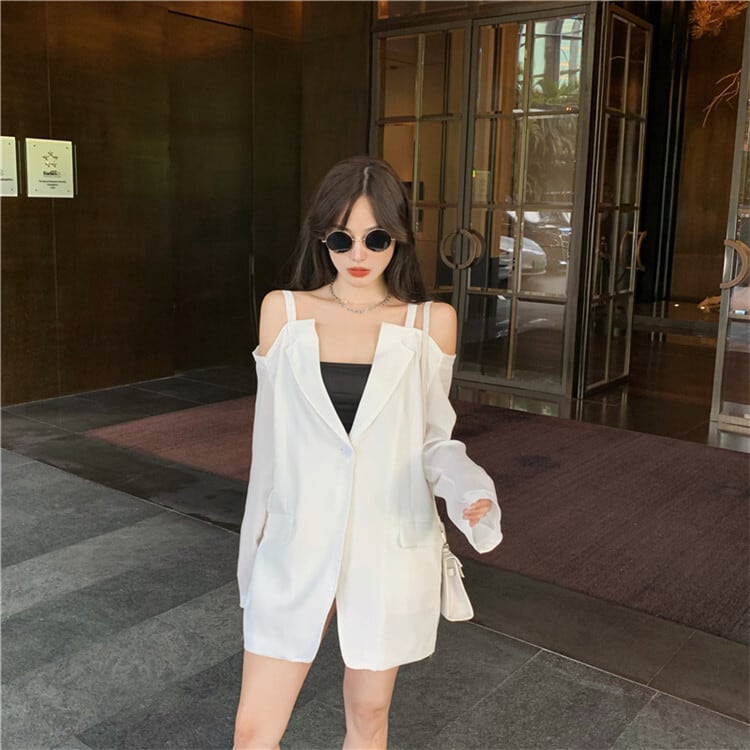 サスペンダー オフショルダー ゆったりする コート スーツの襟 気質 トップス