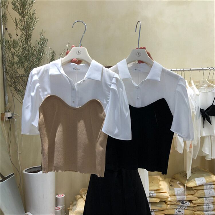 Twitterで話題沸騰!女の子ファッション ポロカラー 縫付 シフォン シャツ 百掛け スリム トップス