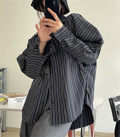 レディース トップス シャツ ボーダー 2色 長袖 2024春新作 カジュアル 韓国風 着痩せ