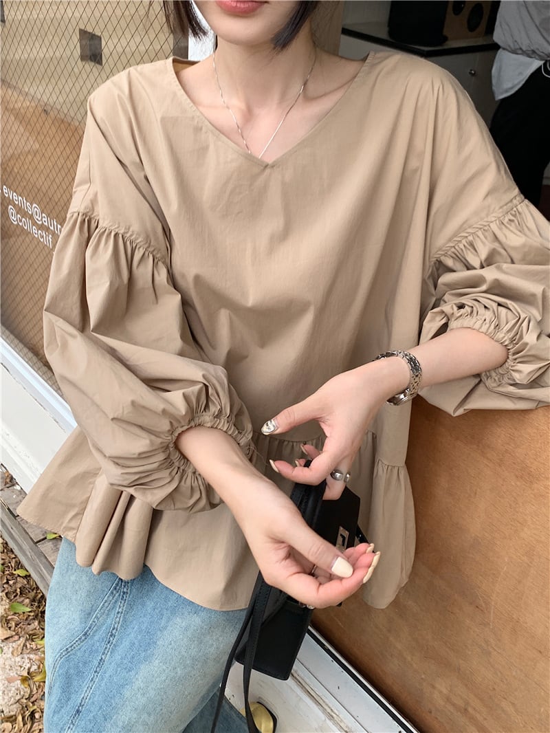 レディース トップス Tシャツ 無地 Vカラー 長袖 2024春新作 カジュアル エレガンス 着痩せ
